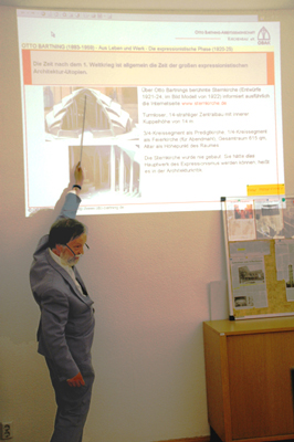 Erläuterungen von Dr. Jan Feustel (OBAK) zur Bildschau vom Videoprojektor zum Werk Otto Bartnings